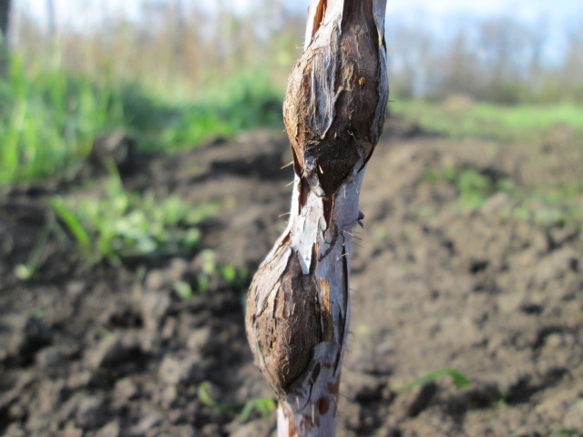 - On the stems affected by the shoot gall midge, swellings are formed