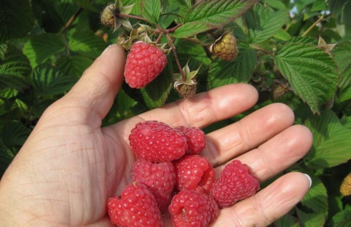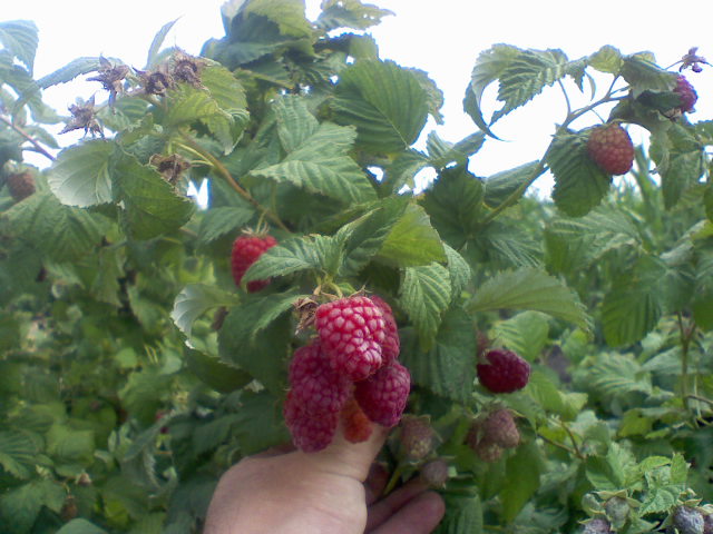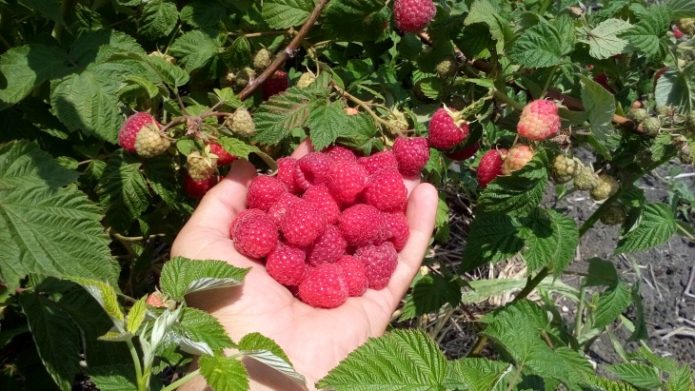 - Lashka raspberries, ready to harvest