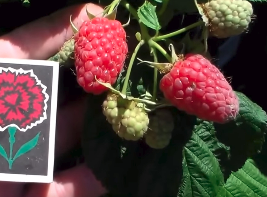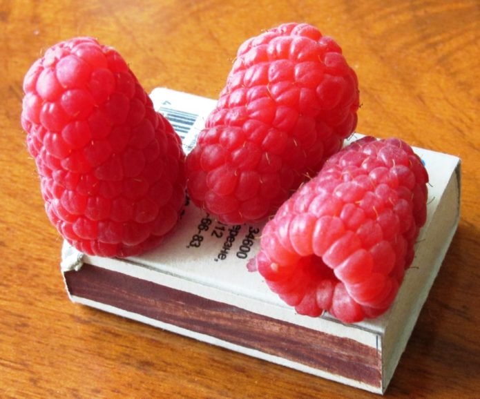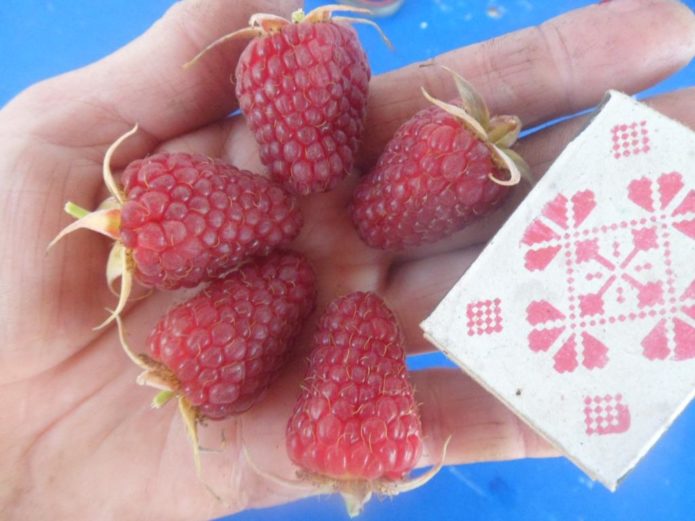- The size of the berries of raspberry Hussar in comparison with a matchbox