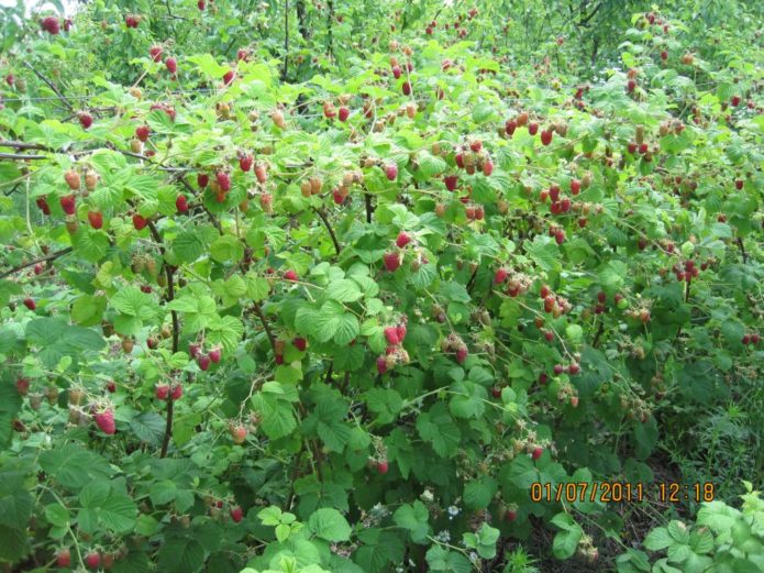 - Raspberry Polana in the midst of mass fruiting