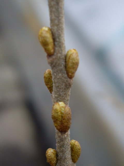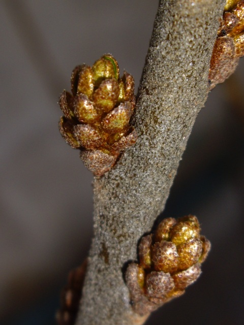 The female sea buckthorn plant is easily distinguished by its small, scaleless buds.
