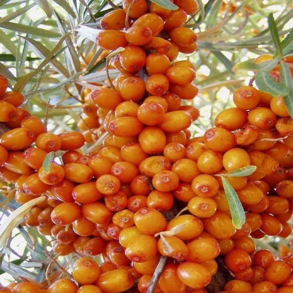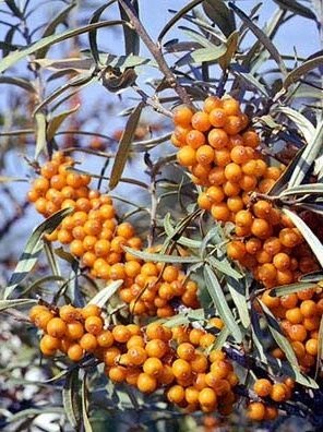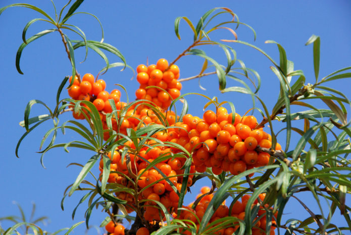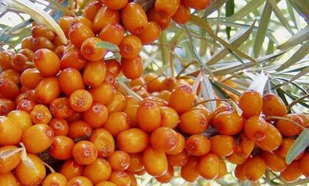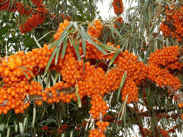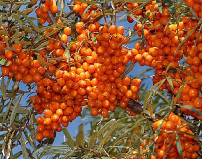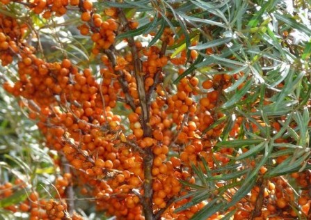 Sea buckthorn, which can easily tolerate a lack of moisture and a sharp drop in temperature: