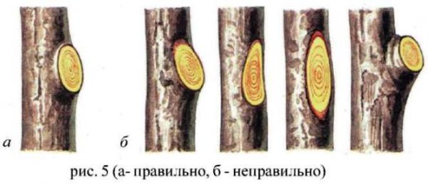 - All sections over 1.5 cm in diameter are processed with garden varnish or paint. This is necessary so that neither harmful microorganisms nor large pests with their offspring penetrate into the cracks.