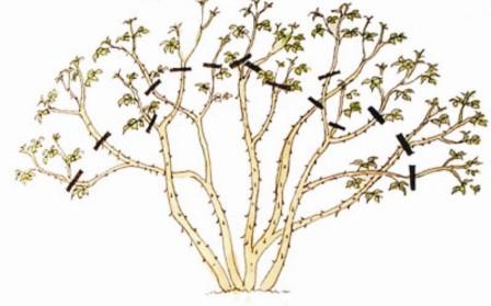 - To shape the bush on skeletal branches, it is necessary to cut off the apical shoots