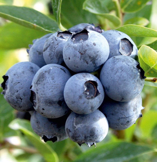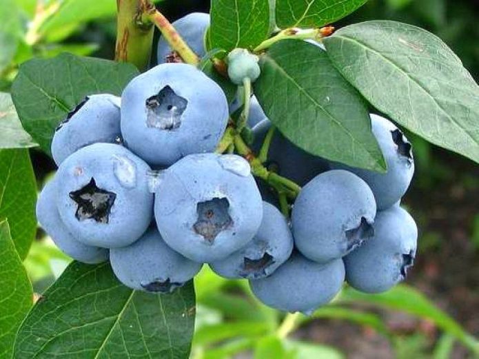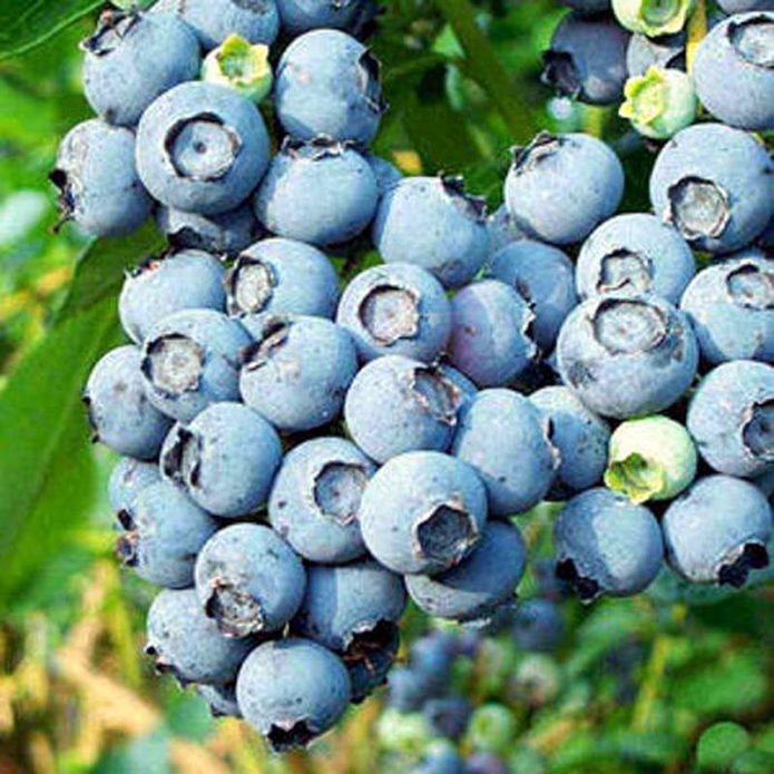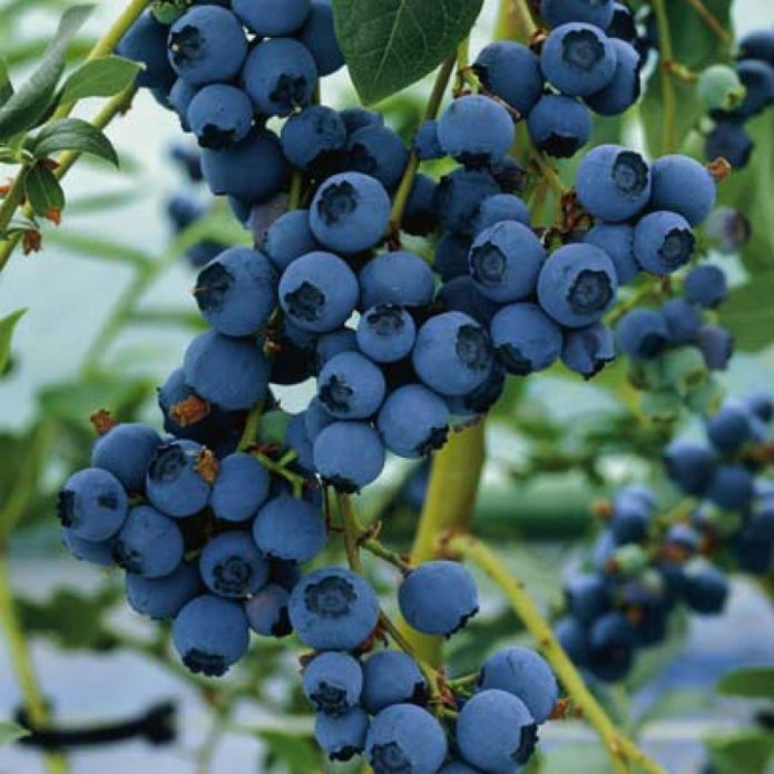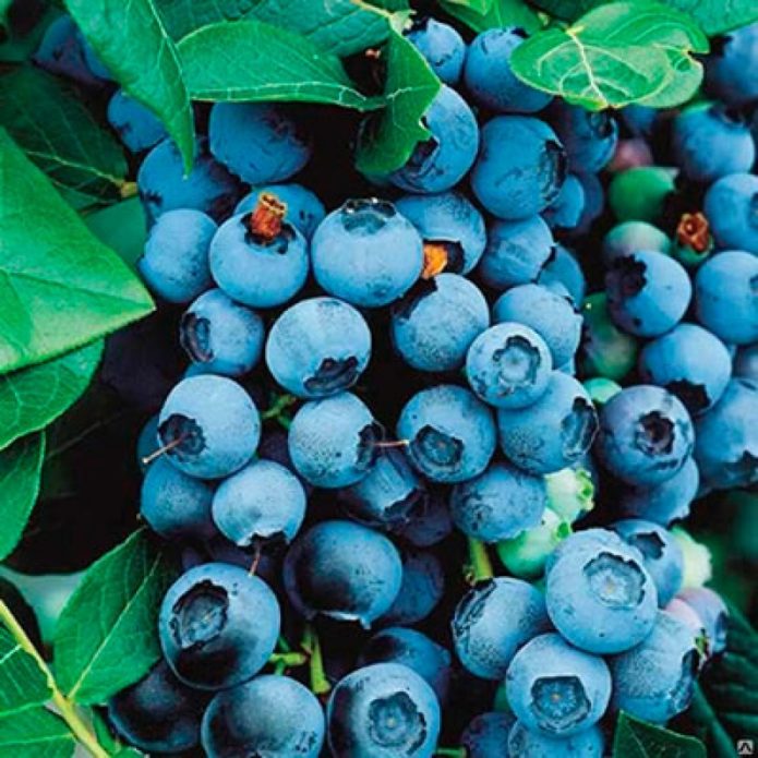 The fruit of the garden blueberry is an almost regular spherical berry with a diameter of 1–1.5 cm with a “scar” at the base. They are arranged as if they are lying on the leaves. The skin is bluish-black, covered with a continuous layer of bluish-blue bloom. The pulp is juicy but firm. The juice is purple-violet. The crop ripens in August or early September.On average, you can count on 7-10 kg per adult bush. Fresh berries can be stored for a month and a half if kept at a temperature of about 0 ° C.