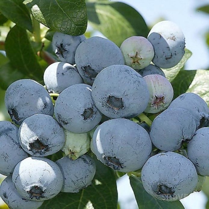 - Сhanticleer. A fairly compact plant with a height of about 1.5 m and a crown diameter of up to 90 cm.The earliest cultivar of garden blueberries, flowers immediately after the spring frost. Harvested at the end of June or at the very beginning of July. Fruiting is annual, but not too abundant (on average 5-6 kg per bush). The berries are sweet, with a slight sourness, of different sizes.