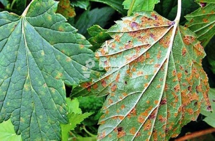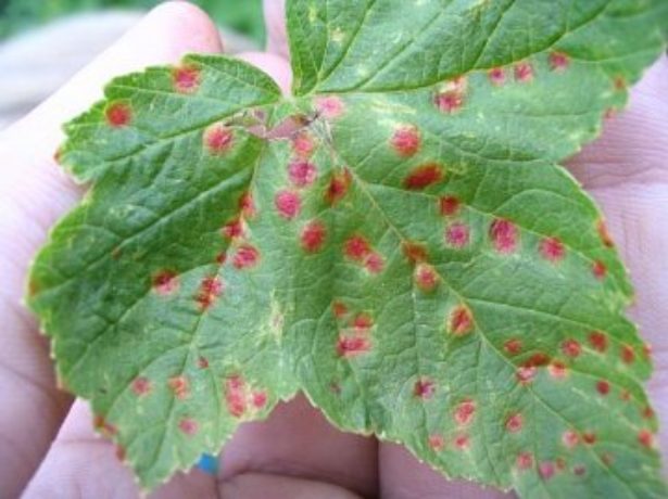It affects not only currants, but also most fruit trees. The first signs of infection are visible in late May or early June. Small swells of a bright saffron color appear on the inside of the sheet, and thin black-brown strokes on the front side. The affected leaves are deformed and fall off in July. The ovaries dry up. Within a month, the bush can lose 70-80% of the green mass and half of the berries. Hot rainy weather contributes to the development of the disease.