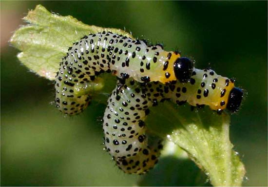 Sawfly caterpillars can eat a currant bush in a matter of days, depriving it of 60–80% of its green mass. Only veins remain from the leaves. Adults lay eggs in fruit ovaries, choosing the largest berries at the base of the brush. They "swell", darken ahead of time, acquire an unnaturally ribbed shape.