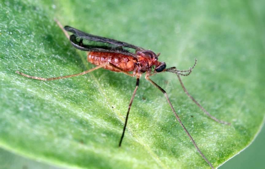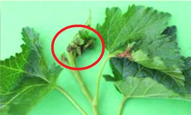 Small insects that resemble mosquitoes. They feed on plant sap. Swelling forms in the damaged areas, then these tissues darken, the surface of the spots cracks, the leaves wither and turn yellow. The peak of pest activity occurs in July-August. Currant yield is reduced by 50-60%.
