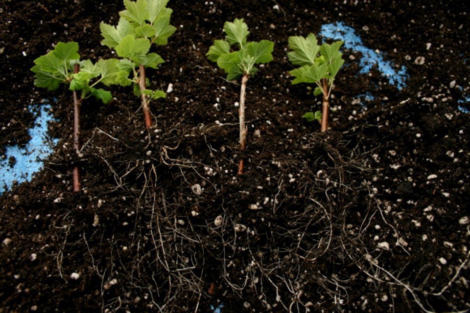 Finished blackcurrant seedlings should have 2-3 main roots at least 25 cm long, and the aerial part should consist of 1-2 strong shoots at least 40 cm high.