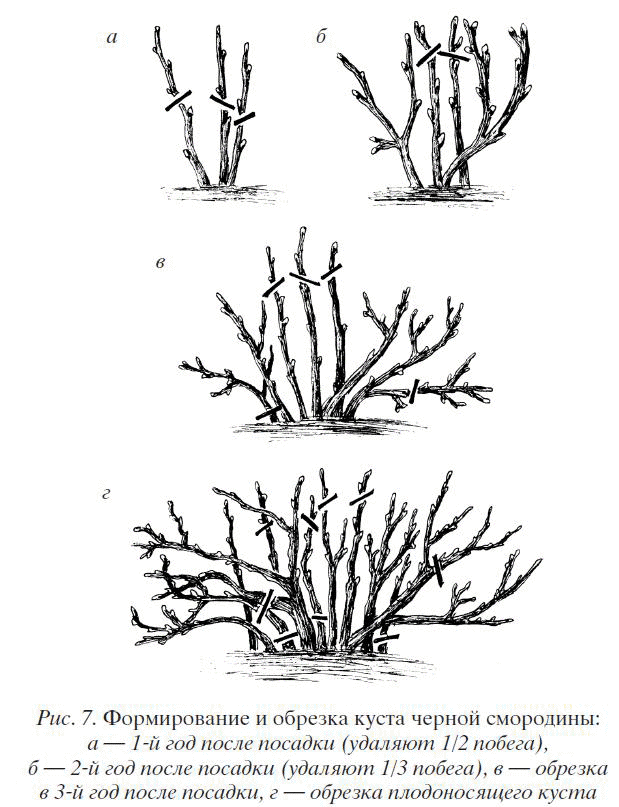 - 10-12 branches are left in the black currant bush, of which 5-6 — the first year (without branching) and 5-6 — last year's (with a small number of side and top branches).