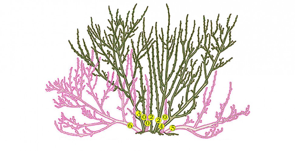 - In the spring, one highly developed young shoot is chosen in the bush, and the rest are cut out.