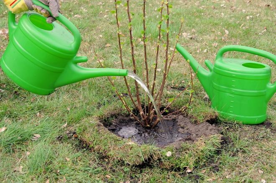 Planting care depends on the state of the weather, and most importantly, the procedure was performed in spring or autumn. Spring planting is risky in the sense of possible drought: winter moisture in the soil quickly ends. Therefore, currants have to be watered weekly, or even 2 times a week. The norm is according to the weather: the soil at the root depth should be properly saturated with moisture, and this may require up to 3 buckets of water. Autumn is easier in this regard: often after planting currants, frequent rains begin. If this does not happen, you have to water as much as in spring.