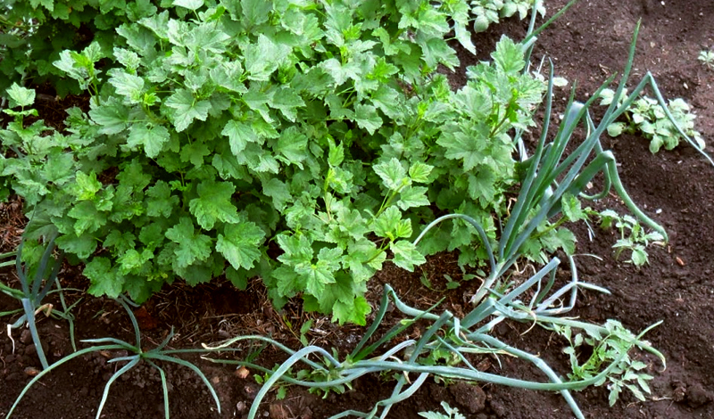 Among ordinary vegetables, there are practically no ones that would interfere with the normal development of black currants. It is clear that you should not plant horseradish, which is known for its ability to grow strongly and interfere with other crops. In the aisles of young bushes, there is a place for onions and garlic, which, by emitting phytoncides, heal the air and soil, and drive away pests.