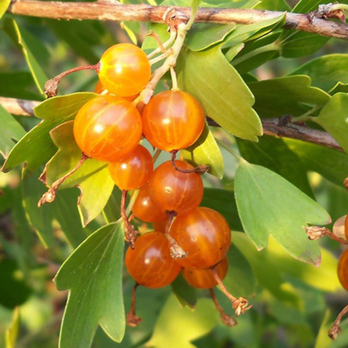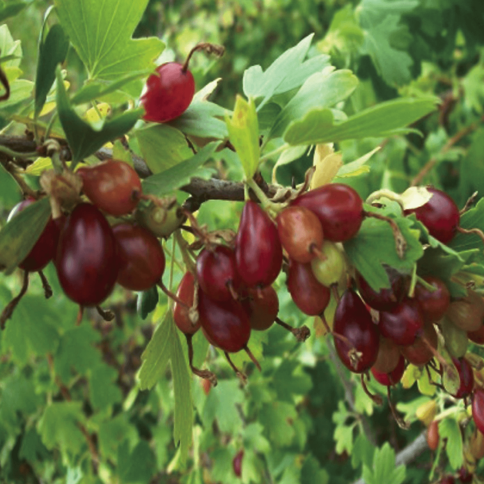 This variety includes currants with pomegranate or cherry-colored berries. It can be either red or gold.