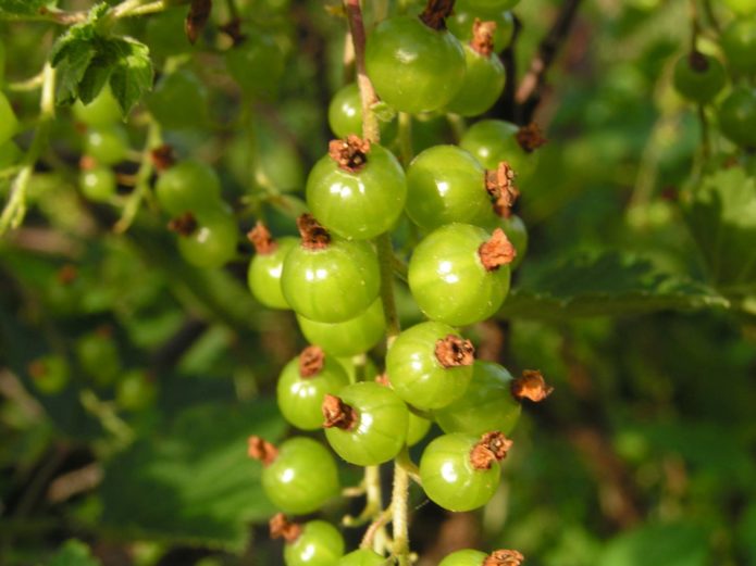 - Berries of the green currant variety Galitsky burshtyn do not crumble