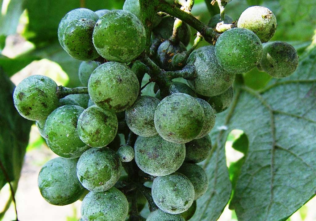 - Mildew is perhaps the most dangerous of the vineyard diseases and is most aggressive in the rainy seasons. First, oily spots form on the leaves, then the whole bush is covered with a white bloom. As a result, all affected parts of the plant can dry out. The most problematic varieties require several preventive sprays per season.