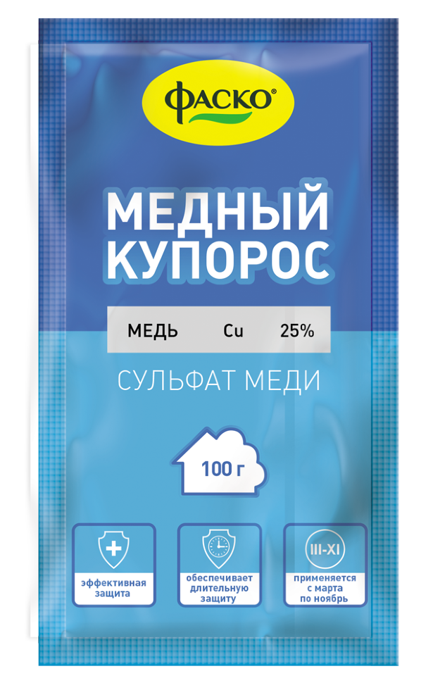 Plants need copper in small quantities as a microfertilizer, but mainly copper sulfate is used as an antiseptic and fungicide, protecting the flora from pathogens of many diseases. At the same time, vitriol also has phytoncidal properties, so it is undesirable to use it during the growing season. The best time for copper sulfate is early spring, at which time it is active against wintering forms of fungi. Like ferrous sulfate, it acts in contact, its excess is also easily washed off by rains. At the same time, unlike iron sulfate, copper sulfate almost does not form an indelible film, and therefore its use before the rain is rather meaningless.