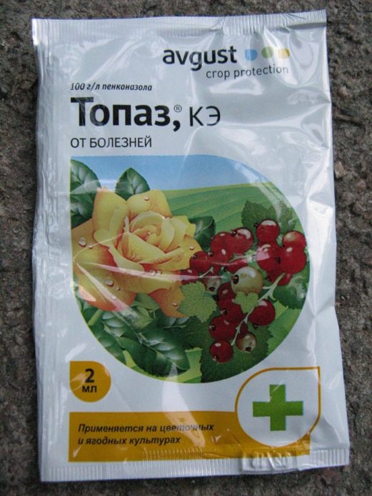 | Topaz | One of the new fungicidal preparations with a wide spectrum of action: it successfully suppresses the development of powdery mildew, fruit rot and rust, and 3 days after spraying it begins to strengthen the defenses of the grapes | To prepare the working solution, use 4 ml (2 ampoules) per bucket of water | This drug is toxic to humans, therefore protective clothing must be worn when working. It is a substance of average toxicity, belongs to the third class of hazard for humans and animals |