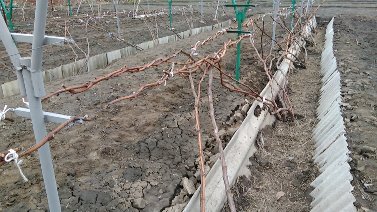 The vines, freed from winter shelter and tied to a trellis, are treated with a solution of ferrous sulfate, which heals cracks in the wood and increases the resistance of the vines to recurrent frosts... For the prevention of oidium and anthracnose, grapes are sprayed with Bordeaux liquid, and Topaz is used for fruit rot.