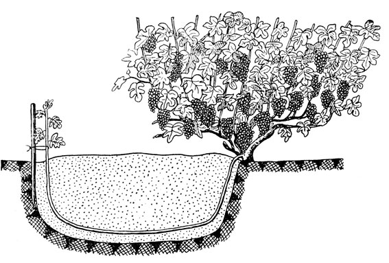 The method of reproduction by layering consists in dropping the growing vine into the ground near the bush.