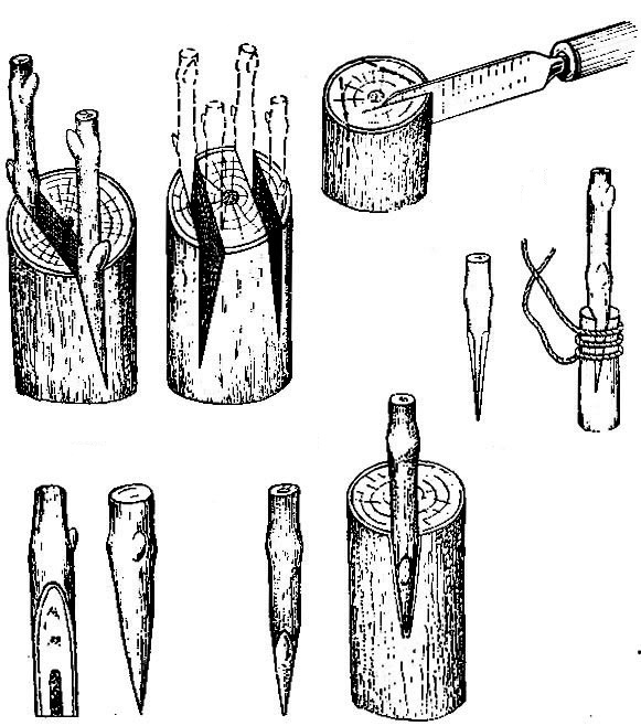 - A green vine is used as a rootstock. It is cut and split in half with a knife at the cut site to a length of 2-3 cm, corresponding to the end of the scion.
