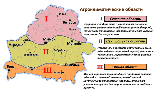 Belarus is conventionally divided into agro-climatic regions.