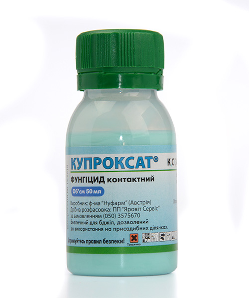 - Fungicide Kuproksat - the protective effect from the effects of the drug lasts for 2-3 weeks