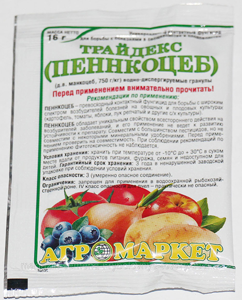 | Strobe | The last spraying is carried out no later than a month before harvest. |
