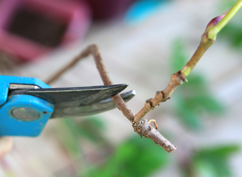 From below, the stalk is cut off 1 cm before the bud; from above, the stem should recede from the bud by about 2 cm.