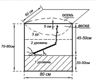 The main principle of the kilchevator is based on the fact that the bottom of the shank needs to be heated, and the upper part should be kept in the cold so that it does not bloom before the roots appear.