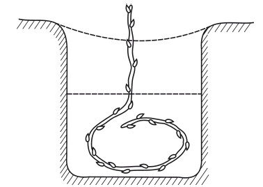 - The resulting circle is placed in a hole 70–75 cm deep and 80 cm in diameter so that the remaining buds are placed on the surface.