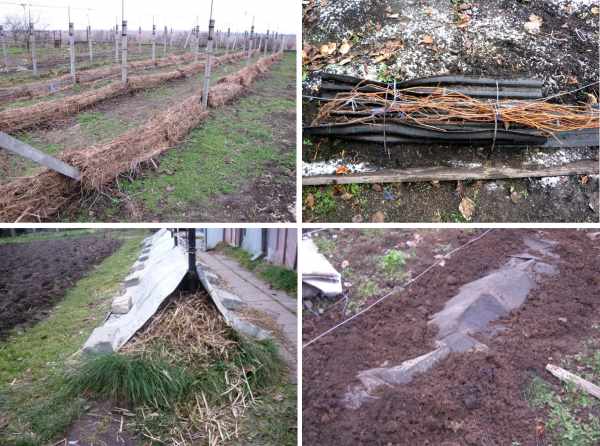 - vines bent and fixed with hooks are covered with earth in trenches, where it was originally grown;
