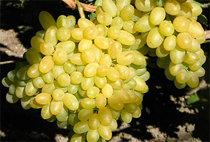 This grape form has a good immunity to fungal diseases at the level of 3–3.5 points and does not require more than two preventive fungicide treatments to be completely healthy.