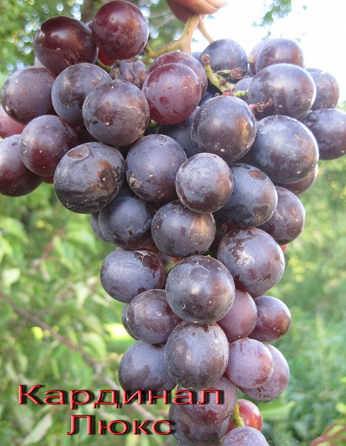 Cardinal deluxe is obtained by crossing Cardinal with Criulensky. He surpassed his predecessor in resistance to fungal and other diseases of grapes and frost resistance, but yielded to him for the duration of the ripening of the crop. Lux matures in 115–125 days.
