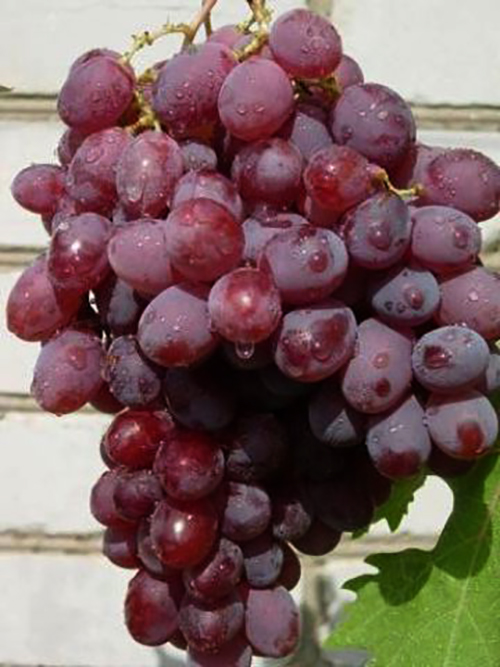 The vines of the Moldavian Cardinal vines are average. It can be grown on arches or trellises, but the grapes must be covered for the winter. Large clusters of Moldovan Cardinal weigh an average of 500 grams, but individual clusters can weigh one and a half kilograms. They consist of large berries of red-violet shades, weighing on average 7-9 grams, and the largest - 20 grams each. They taste sweet with a slight touch of nutmeg and contain 16-18% sugar. The harvested crop can be successfully transported or stored until spring.Cardinal Moldavian can withstand winter low temperatures down to -24 ° С.
