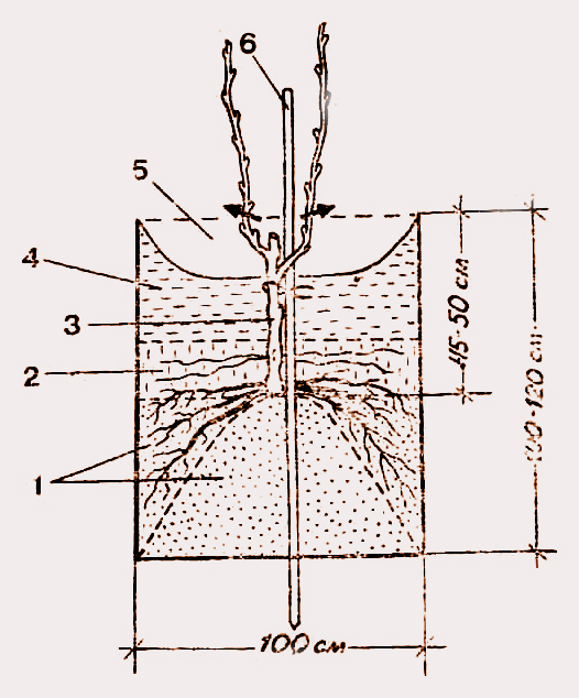 - if the soil nutrient is low, 1–2 buckets of organic matter are placed on the bottom of the pit and covered with a layer of earth;