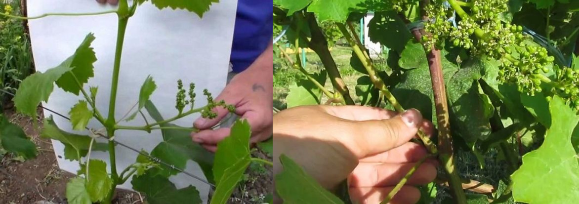 Pinching is a mandatory procedure in which 5 leaves of grapes are left after the second bunch and the tip of the shoot located behind the antennae is cut off. The length of the vine is kept up to 2–2.5 m, so that the fruits can receive enough nutrients and gain sugar content and fructose. Be sure to pinch the excess green shoots and whiskers during all three summer months. These treatments will increase yields and ensure the healthy development of the vine.