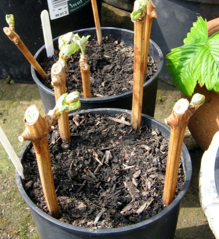 - Shoots are soaked for a day or two and are planted in prepared containers with soil (humus plus sand, expanded clay drainage to the bottom).