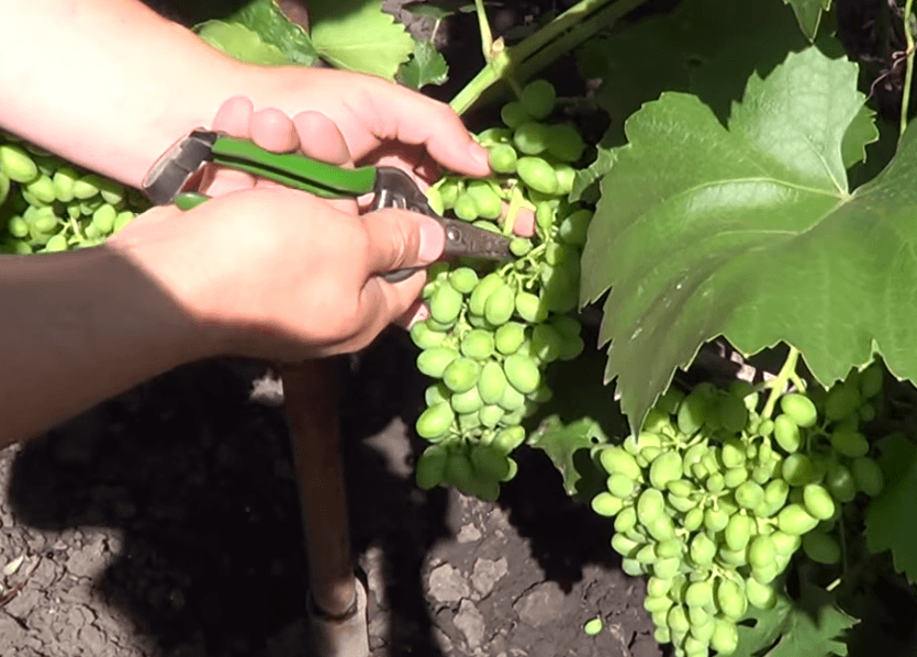On average, when standardizing bunches of Sofia, 30–40% of the berries are removed. But there is an experience of removing more than half of the ovaries in two steps, the bunch after that still grew full-bodied with large berries.