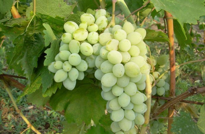 The most sunny and calm areas are distinguished under the bushes. Providing sufficient light, the bunches will ripen evenly and pour sweet juice. Sunlight and heat also prevent the development of fungal diseases in grapes.