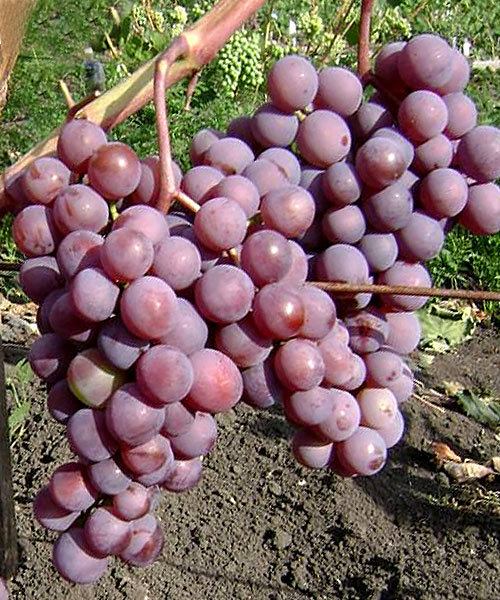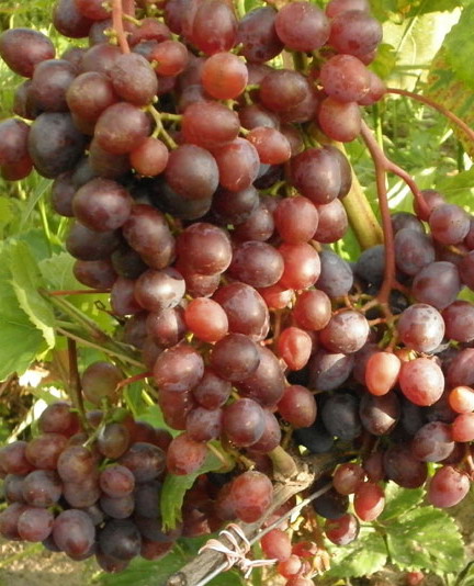 - Veles (amateur selection of V.V. Zagorulko, Ukraine) - vegetative period from 95 to 100 days, vigorous. Forms giant clusters weighing up to 2 kg. The berries are dark pink, the skin is thin, not felt when eating, the taste is nutmeg.
