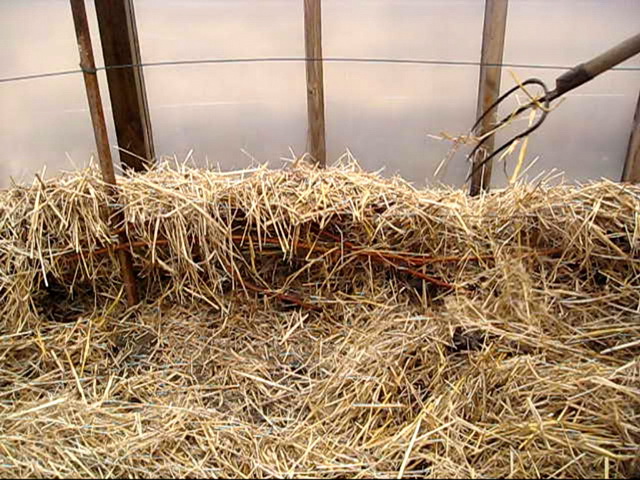 - Straw - keeps heat well, and mice won't start under the rye straw