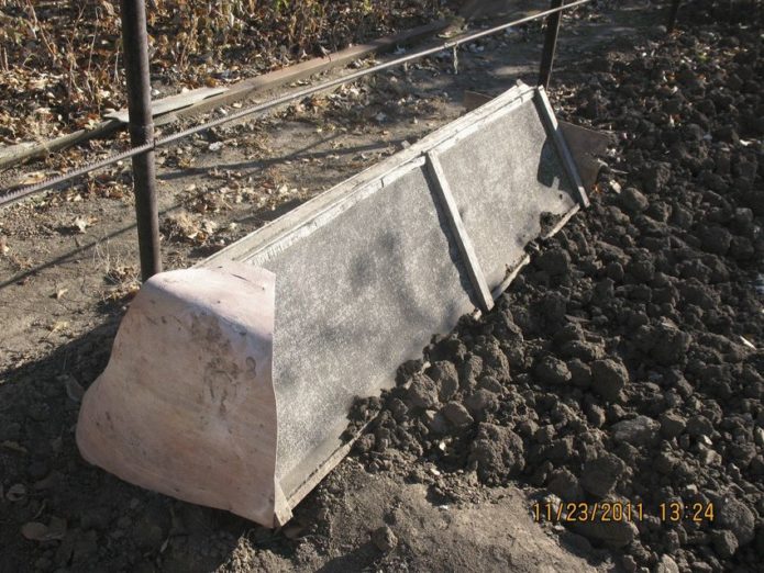 - A layer of construction waste, plant residues, semi-rotted manure is poured.