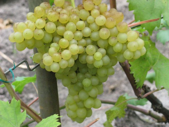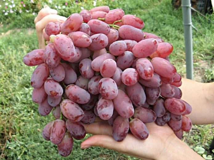 A suicidal variety by definition of one grower. Indeed, it is very productive, I leave 2 inflorescences each, but the 2nd and 3rd, because the 1st is usually huge and requires care when cutting. Unpretentious in terms of care, stable.Cons: sometimes gives rudiments, burst after rain last summer, although this is not typical. The market is doing well. It turns out a good raisin, albeit smallish.