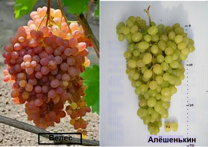 - Aleshenkin (Volgograd selection) - demanding on heat (the required sum of temperatures is 2000 ° C), vigorous. Berries without seeds are often found, although the variety does not belong to the type of raisins. Bunch weight from 1 to 2 kg;