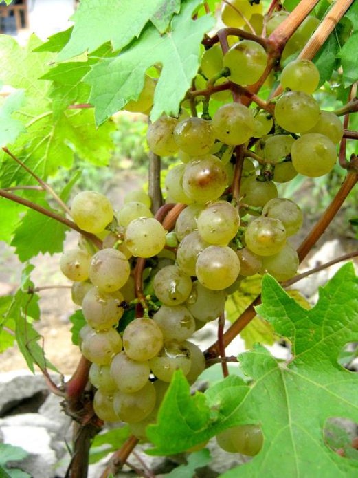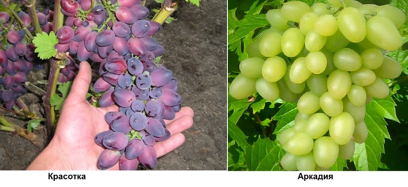 - Arcadia - especially sensitive to powdery mildew; has large clusters - up to 700 g, berries are white, large, weighing 7-14 g, fleshy, with a nutmeg aroma. Seedlings of Arcadia take root well and begin to bear fruit early; the vine ripens well.