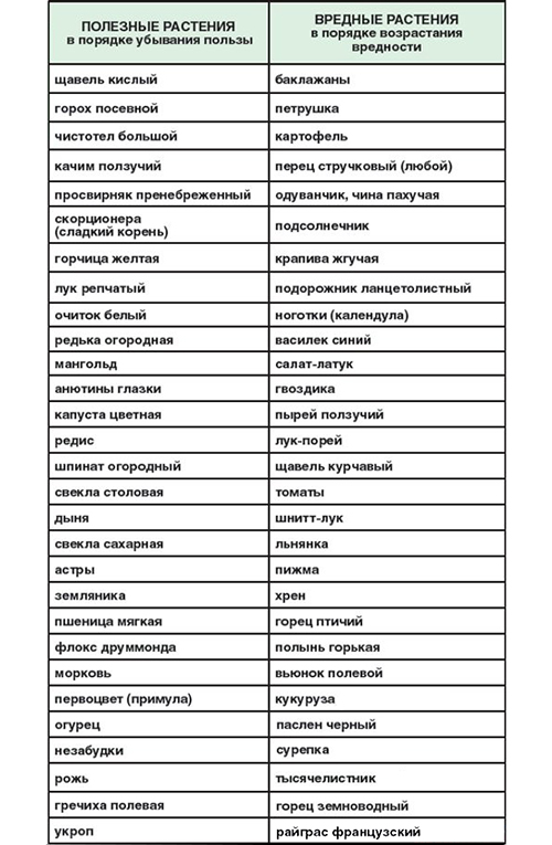L. Moser for 6 years experienced the influence of 170 wild and cultivated plants on grapes. The table lists the plants whose influence is most pronounced