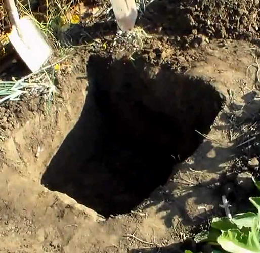 - digging a hole 60–70 cm in diameter and 80 to 100 cm deep;