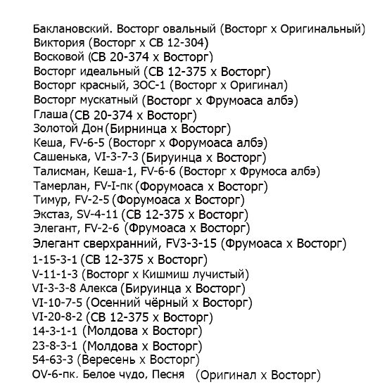 On the basis of the Vostorg variety, at the same time, many varieties of this grape were created in the NIIViV of the RSFSR.